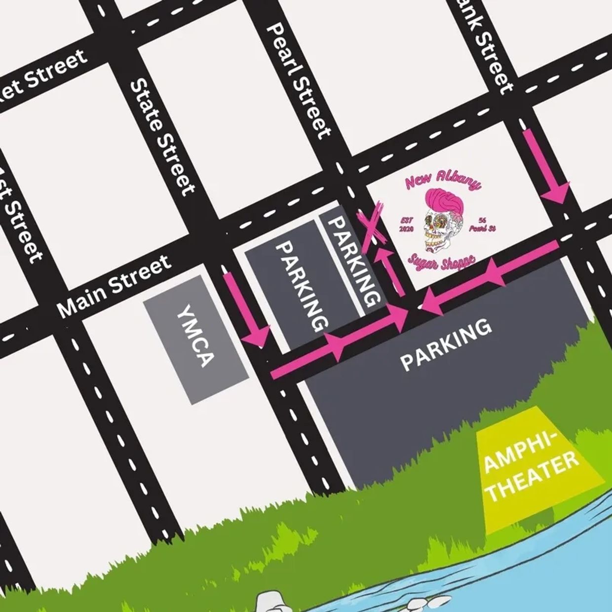 Satisfy your sweet tooth at the New Albany Sugar Shoppe! We handcraft delicious candies and macarons on-site, right in the heart of historic downtown New Albany. You can find us on the corner of Main and Pearl Streets, near the amphitheater and the YMCA parking lot.